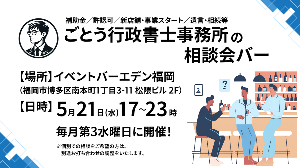 【イベント】ごとう行政書士事務所の相談会バー開催!/5月21日(水)17〜23時