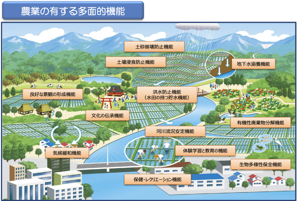これは、ただ作物をつくるだけじゃない、農業がもともと持っている「地域の支え」としての役割のことです。たとえば、