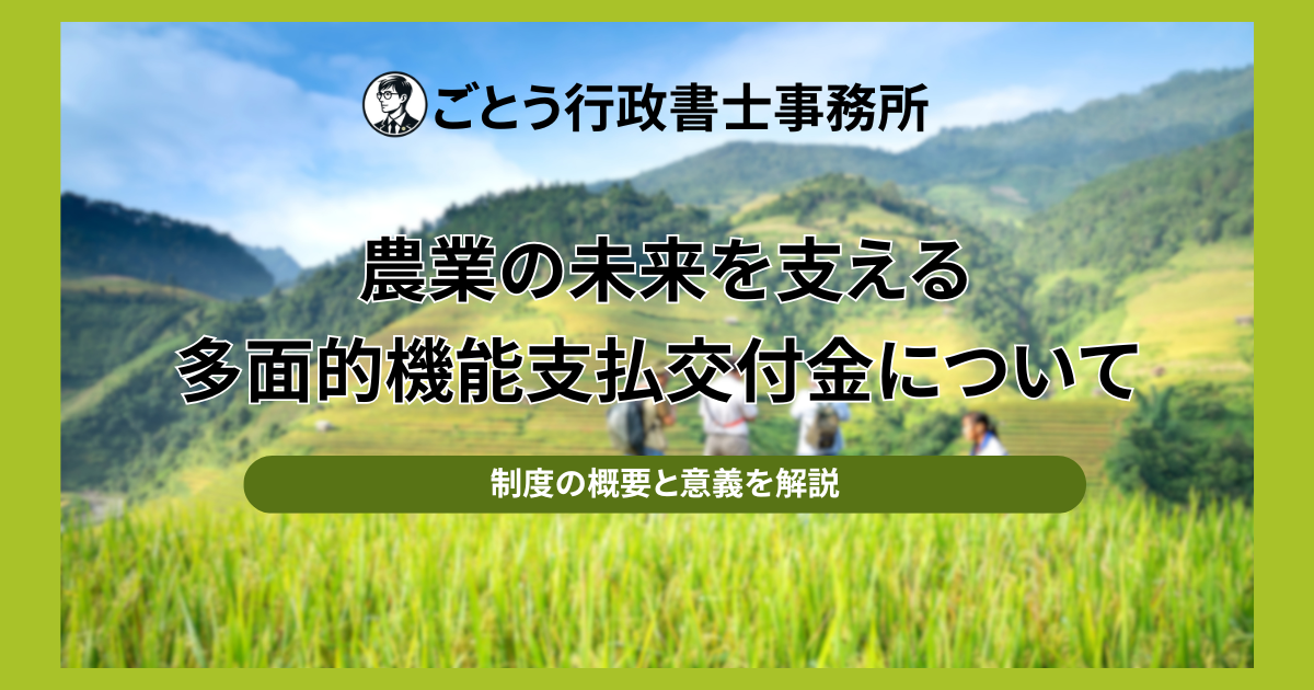 多面的機能支払交付金は、ただの「お金の支援」ではなく、地域の農地や環境を未来へつなげるための仕組みです。「人手が足りない」「事務が負担」と感じている方こそ、無理せず制度を活かす方法があります。ごとう行政書士事務所では、そうした現場の悩みに寄り添ったサポートを行っていますので、気になることがあればいつでもご相談ください。