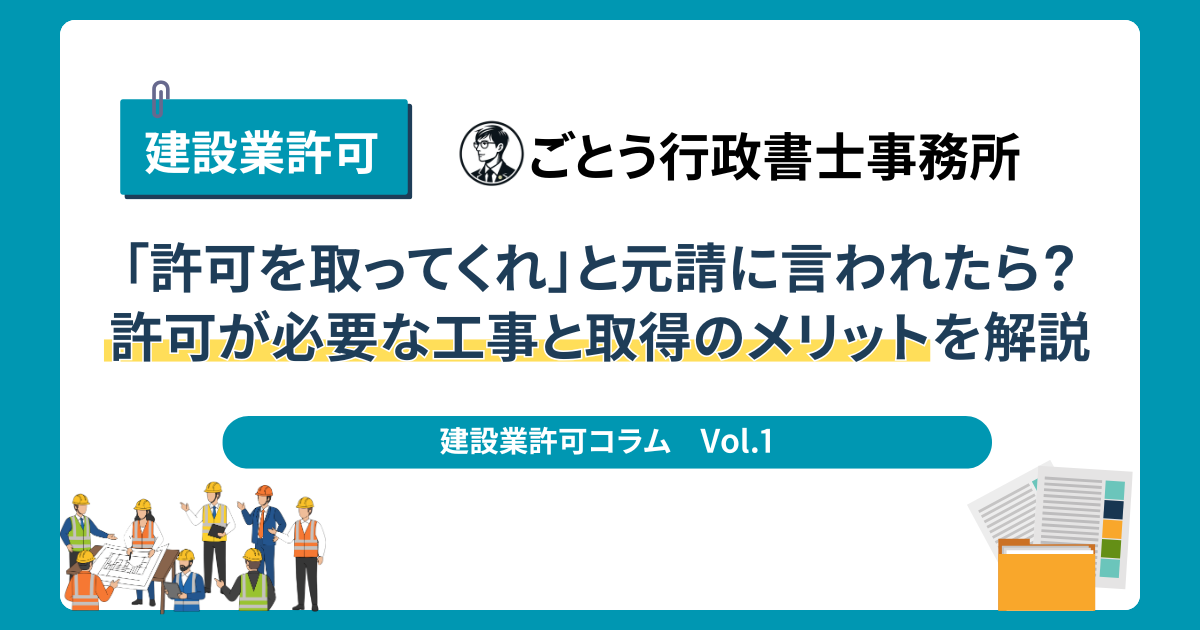 Vol.1 【建設業許可】「許可を取ってくれ」と元請に言われたら?許可が必要な工事と取得のメリットを解説