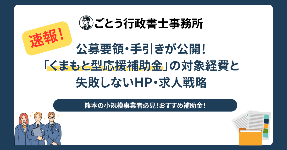 前回、速報としてお伝えし、大変大きな反響をいただいた熊本県の小規模事業者向け支援策「くまもと型応援補助金」。令和8年2月20日に、ついに公募要領と交付要項、参考資料が正式に公開されました!