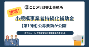 まずは第19回のスケジュールのおさらいです。申請の受付締切は2026年4月30日(木)17:00となっています。これまでも何度もお伝えしていますが、ここで最も注意しなければならないのが、商工会・商工会議所による「事業支援計画書(様式4)」の発行受付締切が 4月16日(木)に設定されている点です。この日を過ぎると、いかなる理由があっても発行してもらえません。また、管轄が商工会か商工会議所かによって、そしてその地域によって、電子システム上での発行依頼手順やいつまでに予約を取って訪問をしないといけないのかなども異なりますので、事前にご自身の管轄のルールを確認し、余裕を持ったスケジュールで進めることが大切です。