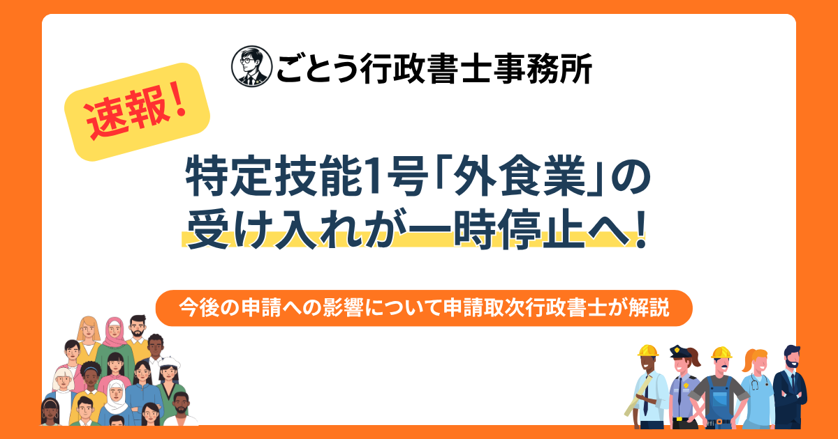 特定技能1号「外食業」の受け入れが一時停止へ!今後の申請への影響について申請取次行政書士が解説